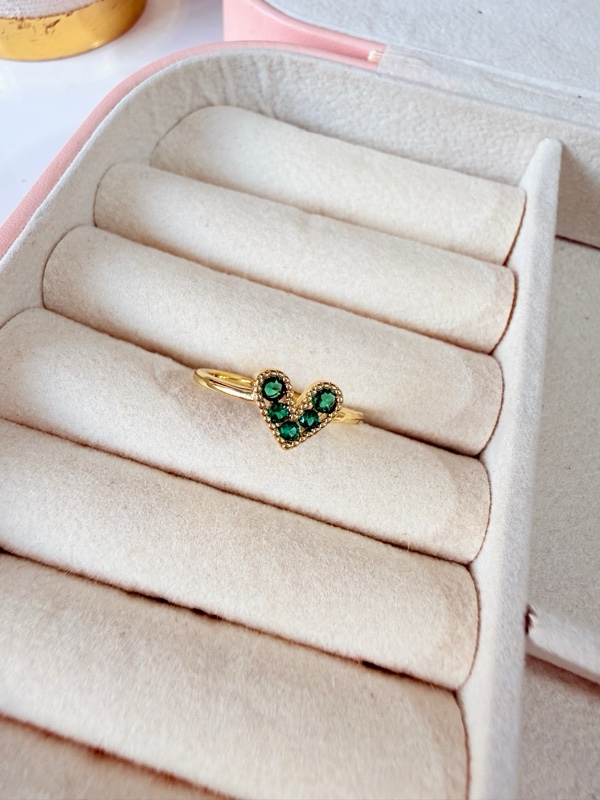 ANILLO CORAZON VERDE DE CIRCONES DORADO