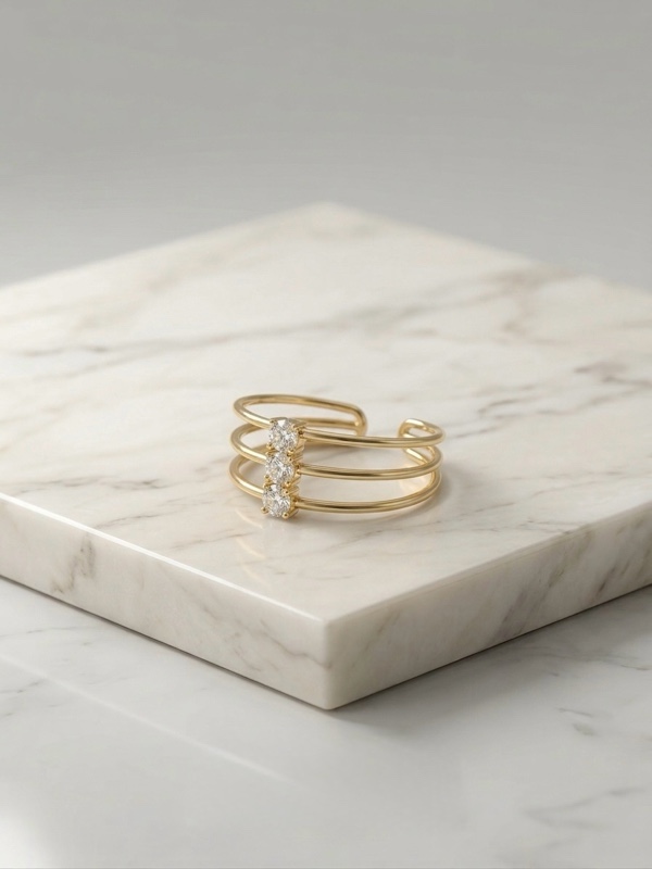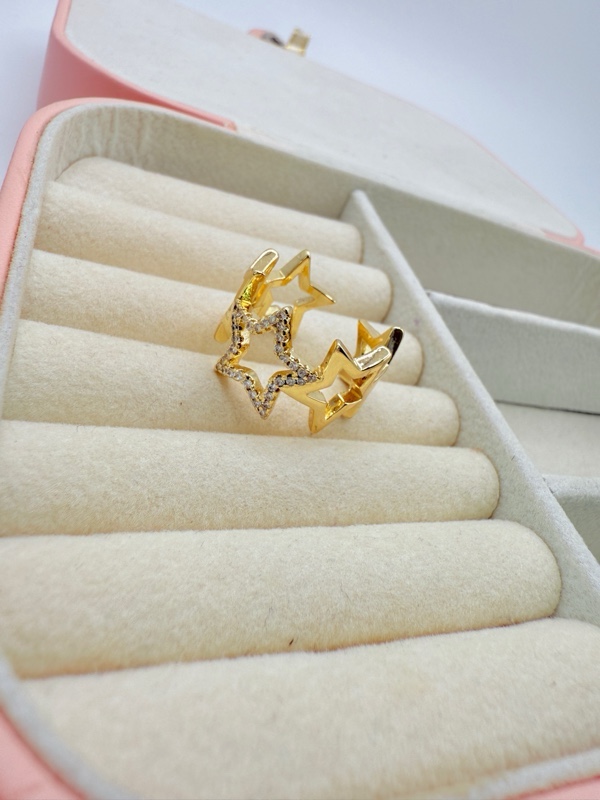 ANILLO 3 LINEAS Y CIRCON DORADO