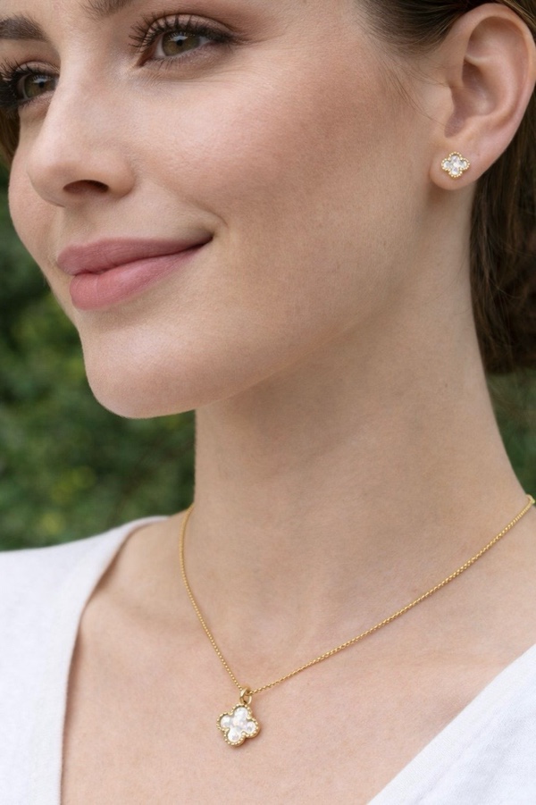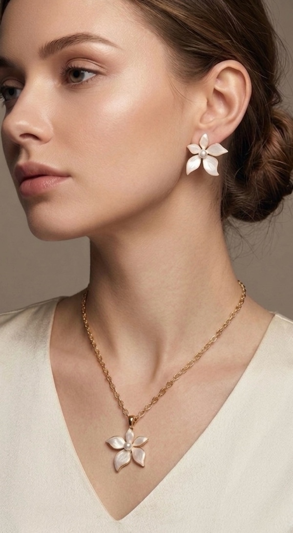 SET FLOR GRANDE BLANCA NACAR Y TOPOS DORADO