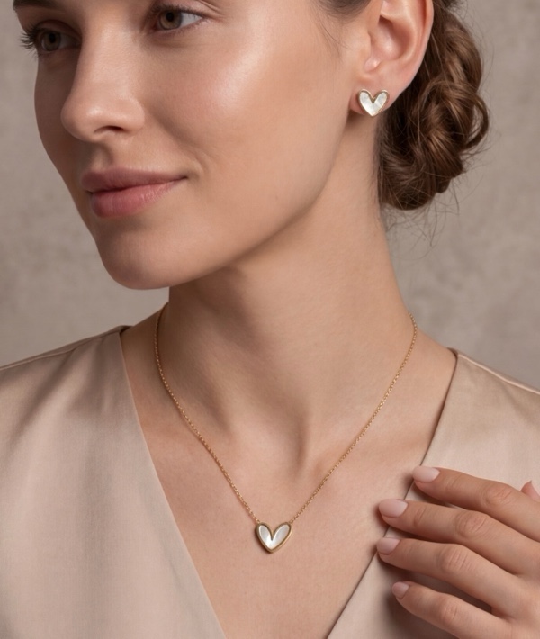 SET CADENA Y TOPO CORAZON ACERO DORADO