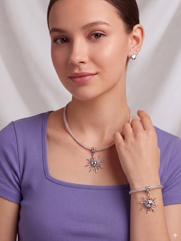 SET SOLES COLLAR, PULSERA Y TOPOS PLATEADO PLATEADO