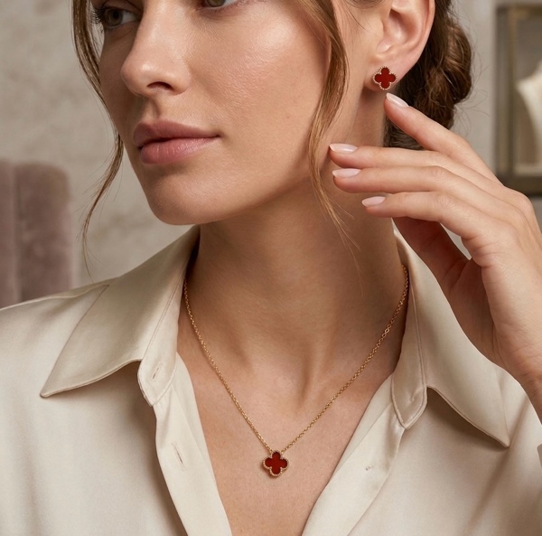 SET CADENA Y TOPOS CIRCON DE CORAZON ROJO DORADO
