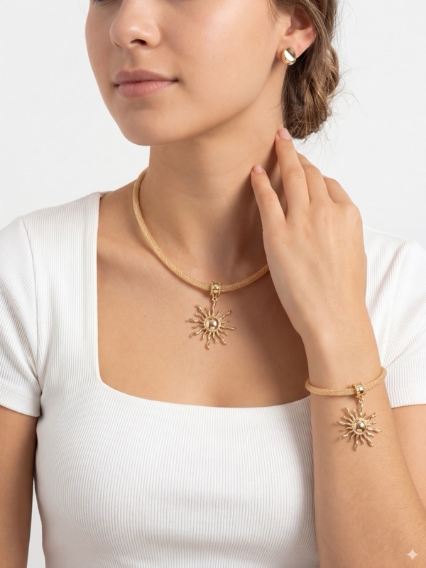 SET SOLES COLLAR, PULSERA Y TOPOS DORADO DORADO