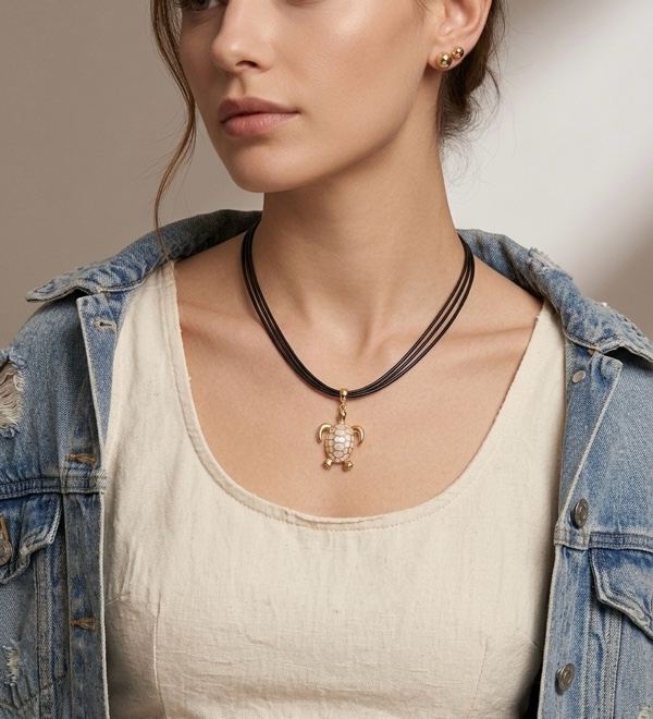SET COLLAR TORTUGA Y TOPOS DORADO