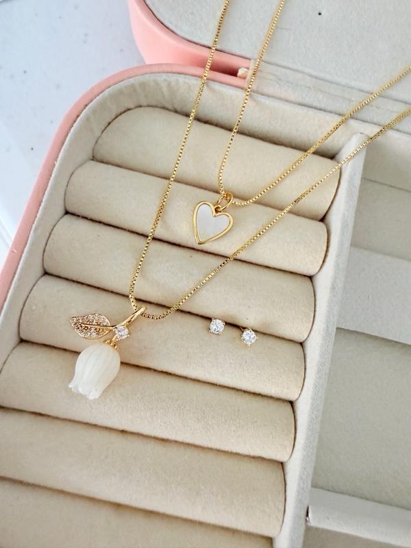COLLAR 3 CADENAS CORAZON FLOR Y ESLABONES DORADO