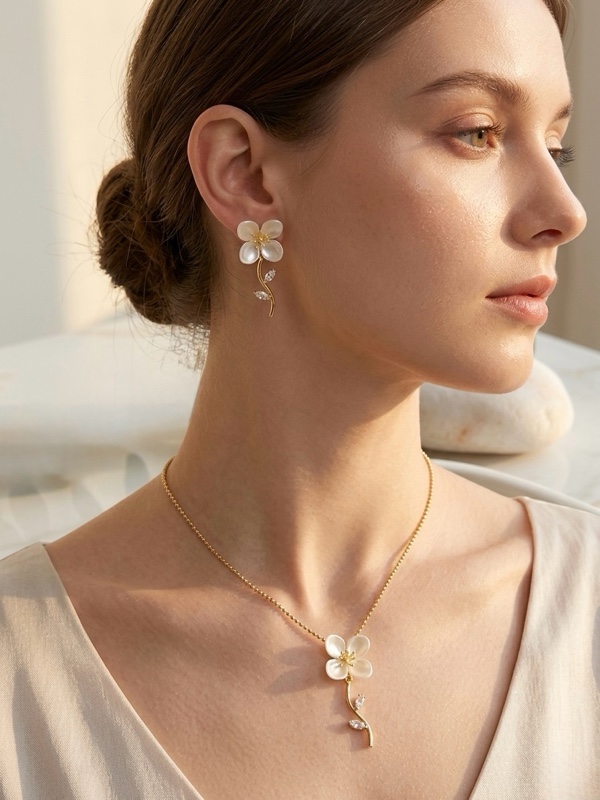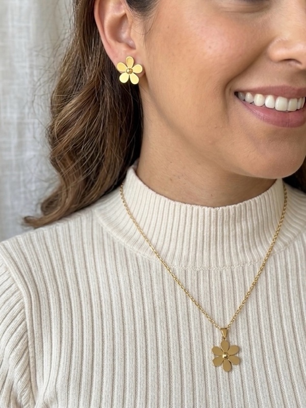 SET FLOR GRANDE BLANCA NACAR Y TOPOS DORADO