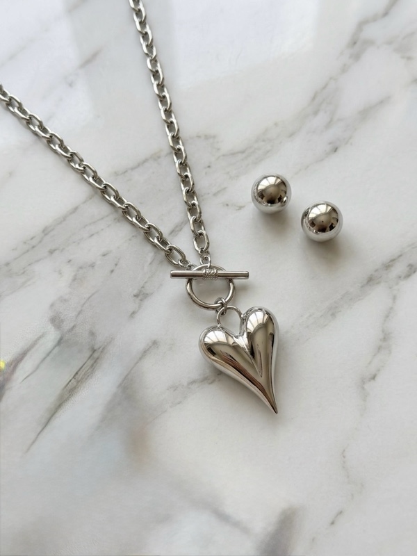 SET COLLAR PLATEADO Y TOPOS PLATEADO