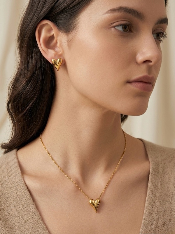 SET CADENA Y TOPO CORAZON ACERO DORADO