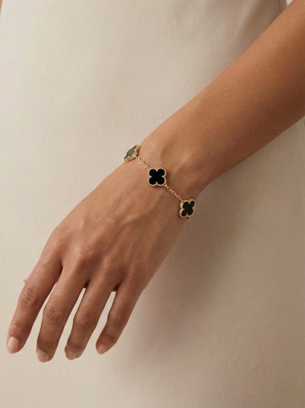 PULSERA TREBOL NEGRO DORADO