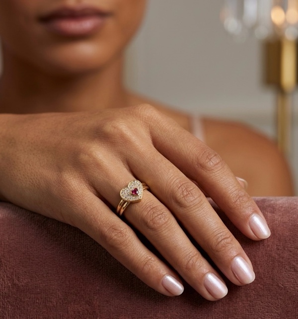 ANILLO CORAZON CIRCONES DE COLORES DORADO