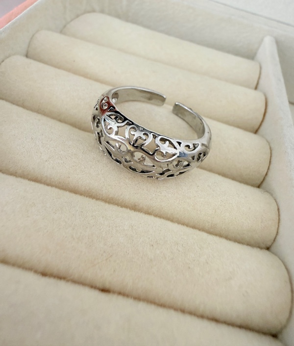 ANILLO RODIO CORAZON Y CIRCON ROSA DORADO