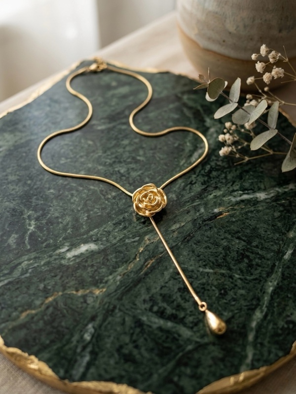 COLLAR 3 CADENAS CORAZON FLOR Y ESLABONES DORADO cantidad