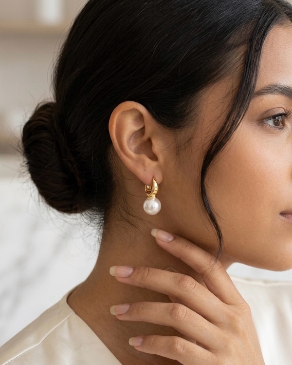 ARETES CIRCULÓ CON PERLA ACERO DORADO